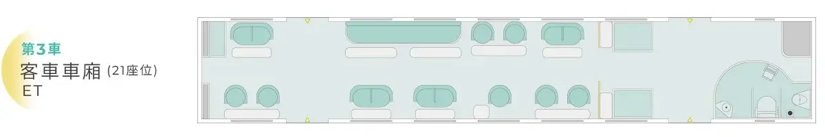 - 高級沙發座椅:部分座位設有四人沙發包廂,比一般火車座椅還豪華,久坐也不累,適合三五好友或家庭出遊